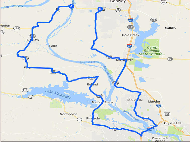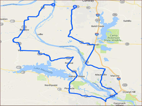 follow AR-100 W 6.93 mi * Sharp left onto AR-365 N/Arkansas