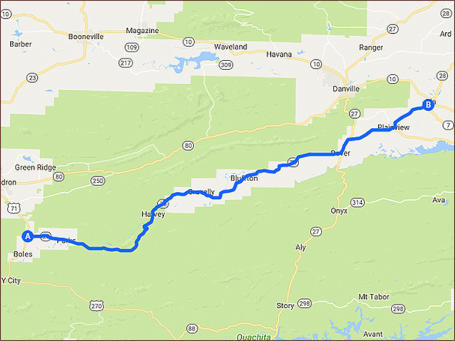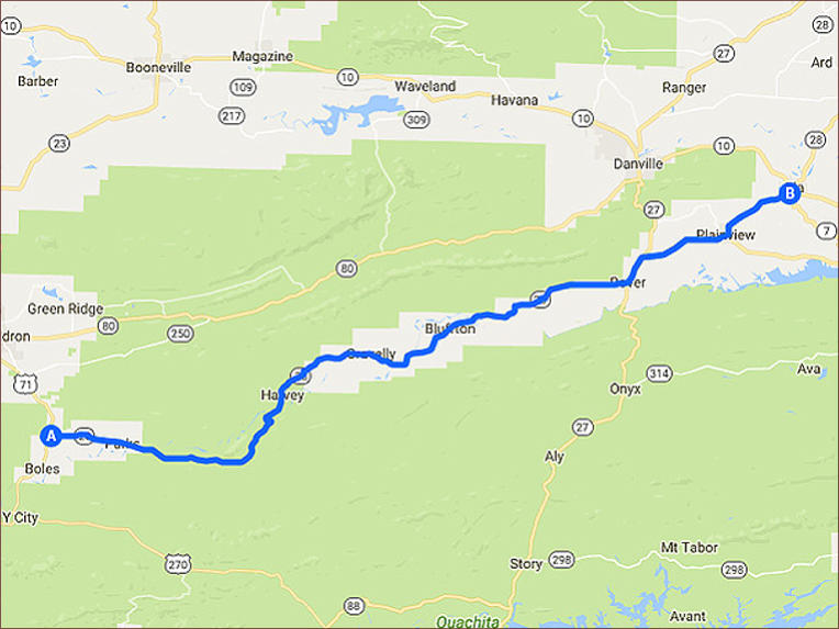 Head east on AR-28 E toward Antioch Rd 51.4 mi * Turn left