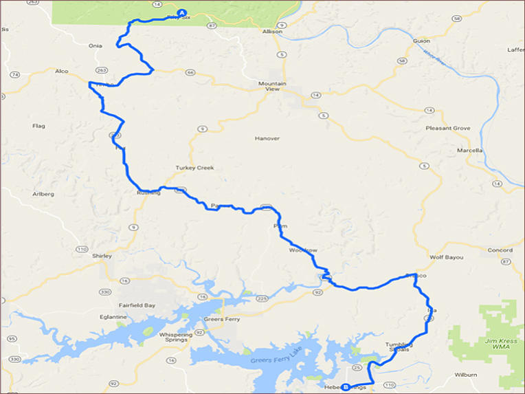 AR-92 E 5.89 mi * Turn right onto AR-25 S/AR-5 S 12.7 mi *