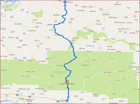 This 85 mile ride takes you along AR 21 and AR 103. One of the