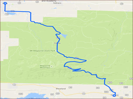 This 28 mile ride begins in Havana, the Mount Magazine Scenic