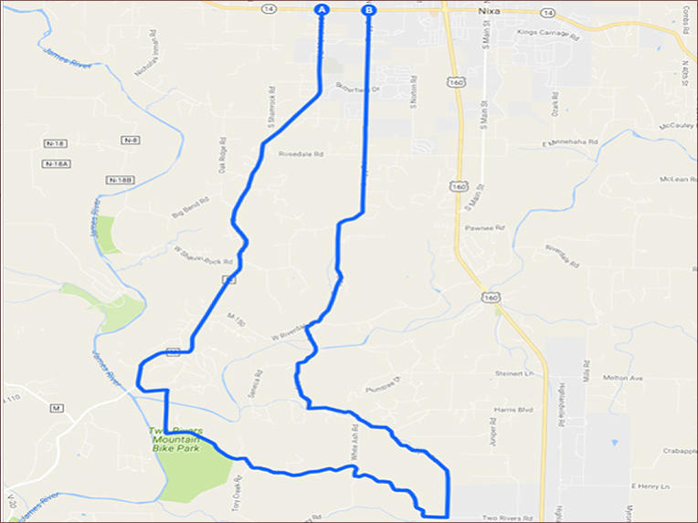 0.371 mi * Take the 1st right onto 2 Rivers Rd/M-140-A Continue