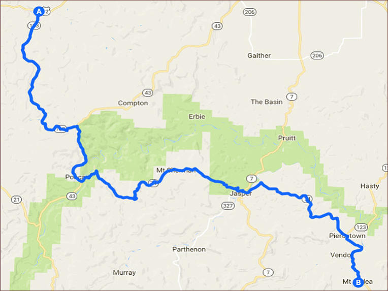 This 45 mile ride covers the scenic AR 74 and AR 103 and the