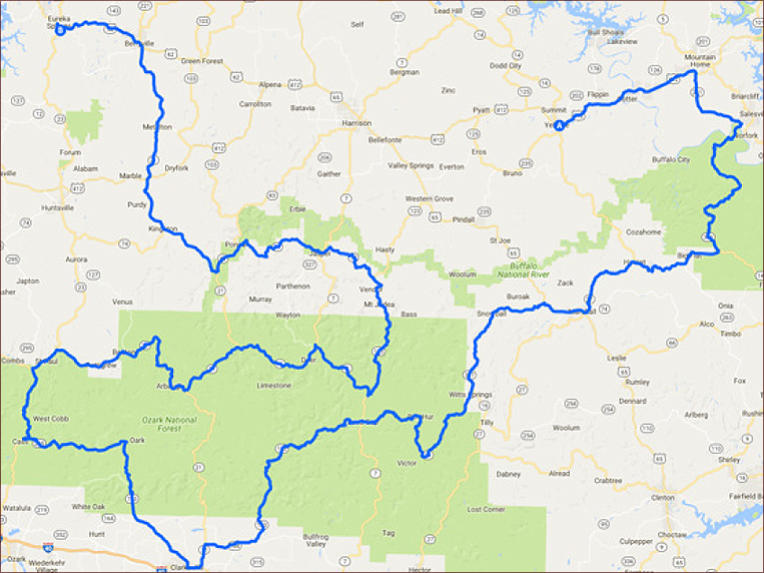 AR-103 N 19.7 mi * Sharp left onto AR-215 W 14.9 mi * Turn