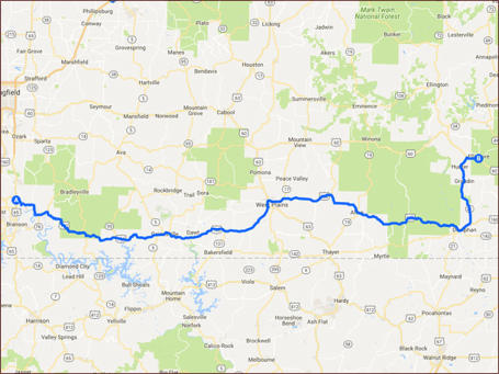 Walnut Shade to Ellsinore - 197 miles