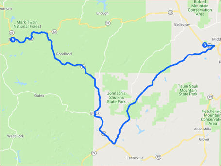 MO-32 E/MO-49 S 5.54 mi Turn right onto MO-49 S 14.6 mi Turn