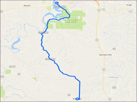 Camdenton to Eldridge - 17 miles