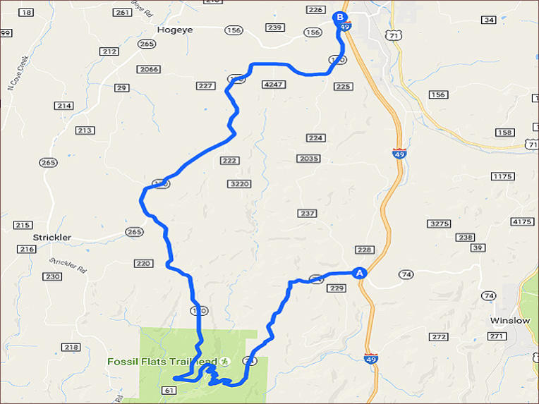 Head northwest on AR-74 W toward Winn Creek Rd 6.69 mi *