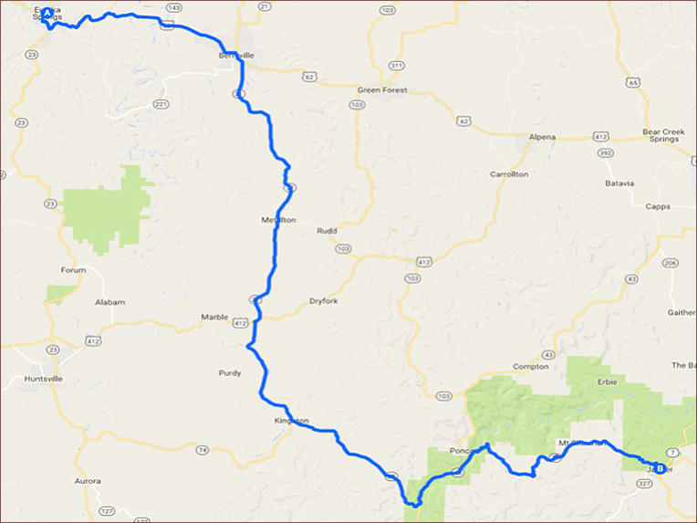 * Turn left onto AR-21 S 7.25 mi * Turn left to stay on AR-21