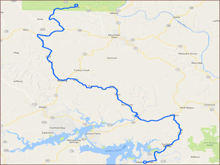 AR-92 E 5.89 mi * Turn right onto AR-25 S/AR-5 S 12.7 mi *