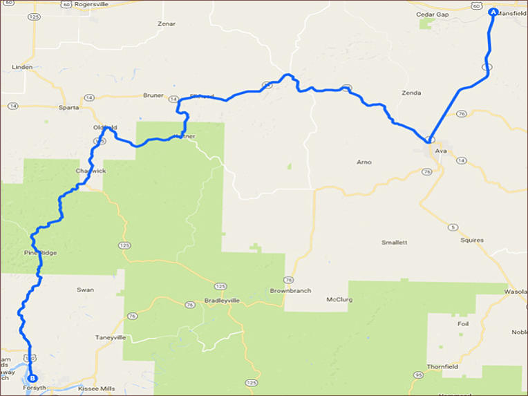 Mansfield to Forsyth - 66 miles