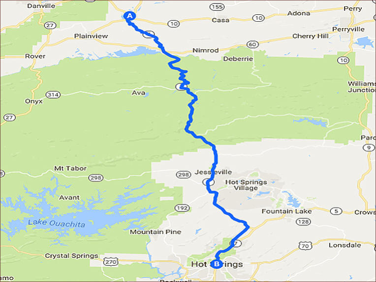 This 52 mile ride begins in Ola and runs south on scenic AR 7 to