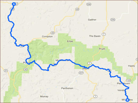 This 45 mile ride covers the scenic AR 74 and AR 103 and the