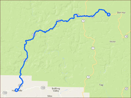 This 33 mile ride starts at the famous Pedestal Rock Scenic Area and concludes in Hagarville. This is one ofthe funnest rides that Arkansas has to offer.