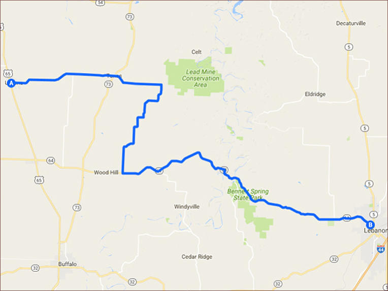 onto State Rd E 3.78 mi * Turn right onto State Hwy T 0.824 mi * Turn left to stay on State Hwy T