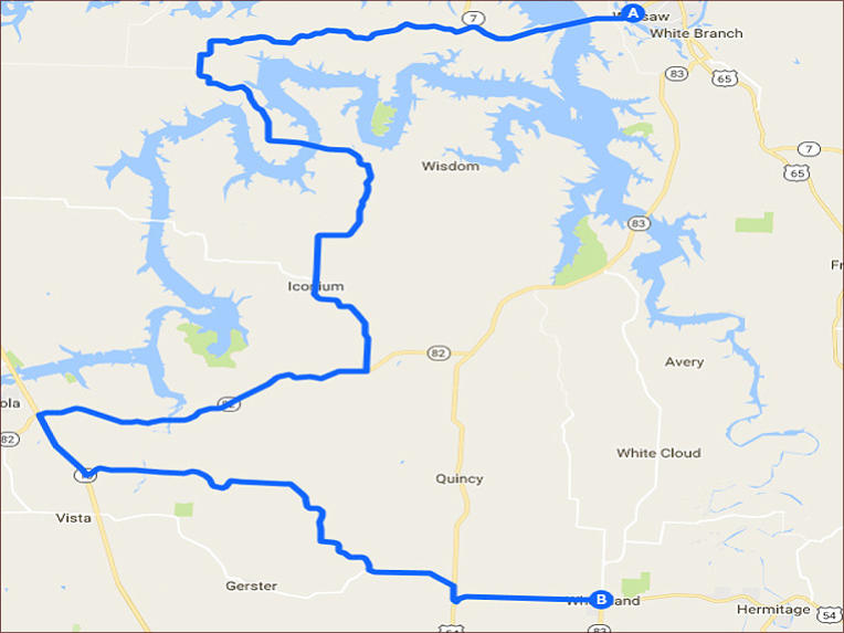 Warsaw to Wheatland - 59 miles