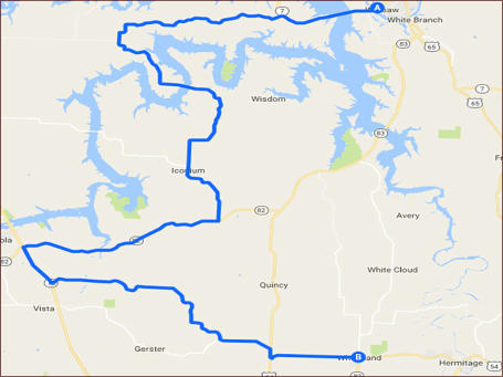 9.65 mi * Turn left onto MO-13 S 2.55 mi * Turn left onto State